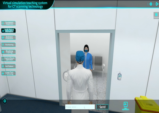 2.システムは一人称視点でCT装置の撮影を行い、キーボード+マウスによる操作を実現。標準的な3D検査室と制御室環境を備え、三次元装置配置は実際の病院環境と一致しており、受講者が操作中にリアルな操作環境を体感できるように設計されています。