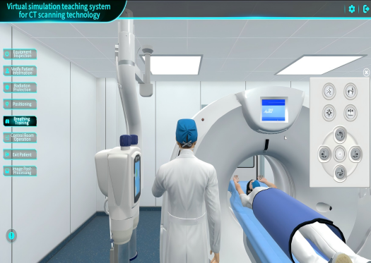 3.システムを通じてCT位置決め・装置調整などの完全なプロセスをシミュレート可能。システム内のCT装置は臨床実機を完全に模倣し、操作ボタンは実際にクリック操作が可能です。