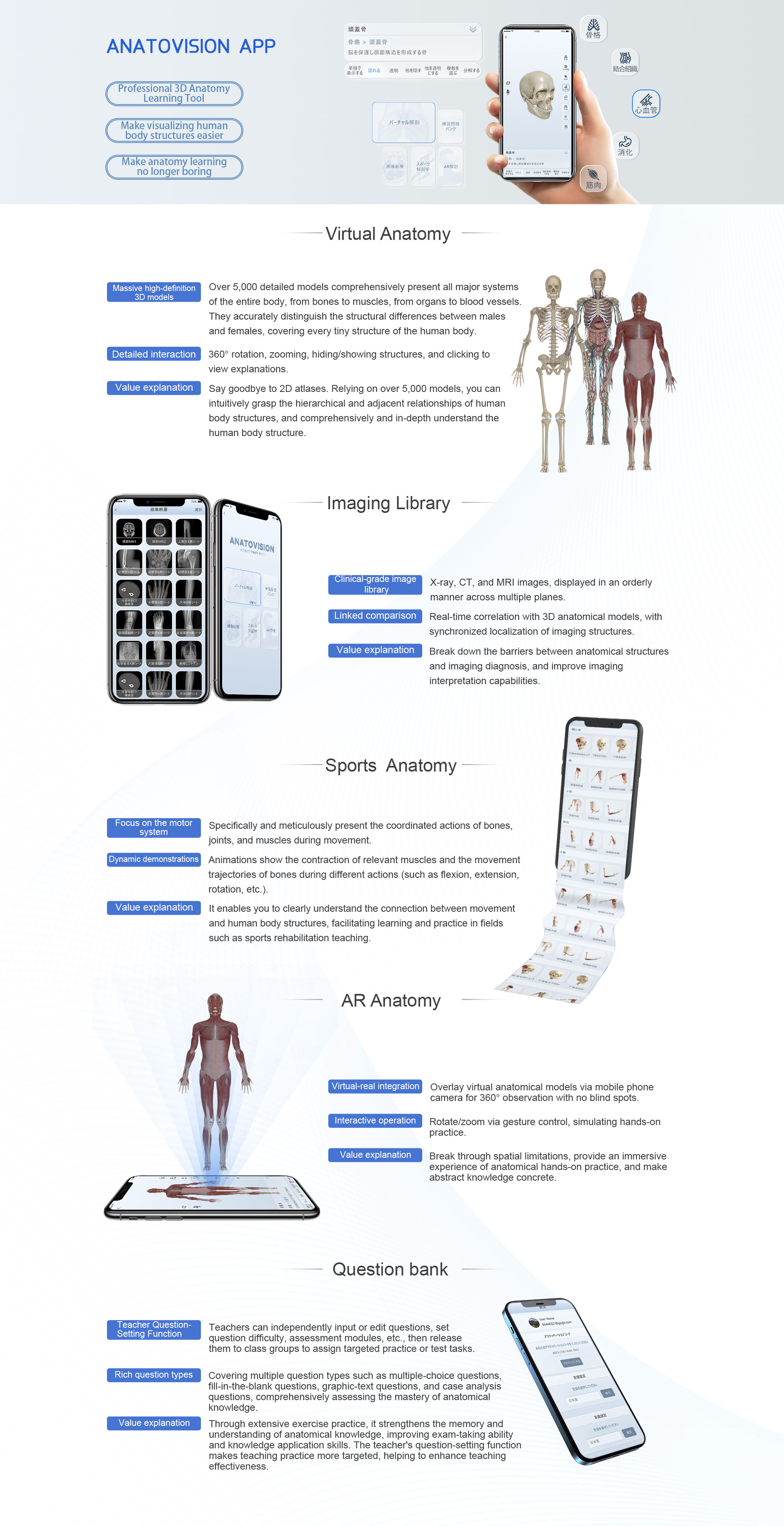 システムはヒューマンマシンインタラクション、拡張現実、仮想現実などの情報技術を最大限に活用し、CT検査技術関連実験の高コスト、高リスク、高消費の問題を効果的に回避した。学生は多様な方法でこの実験教育プロジェクトにアクセスし自主学習を行うことができ、従来の教育の時間的・空間的制約を打破する。